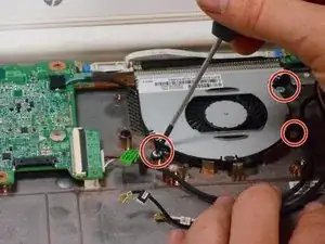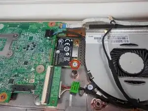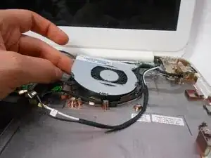 Используя пальцы или лопатку, отсоедините кабель, соединяющий вентилятор с материнской платой.