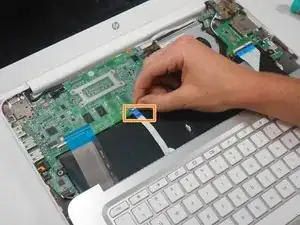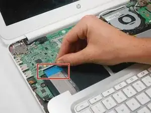 Потяните вверх за чёрную полоску, чтобы отсоединить кабель дисплея.