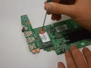 Снимите винт, указанный красным кружком, в верхней части разъёма платы.
