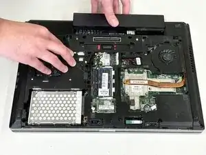 Осторожно сдвиньте жесткий диск влево и извлеките его.