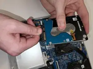 Отсоедините питание от диска, схватив кабель SATA / питания за пластиковый край и потянув его от диска.