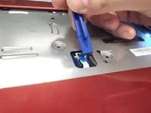 Используйте пластиковый инструмент для поддевания, чтобы приподнять клавиатуру снизу справа.