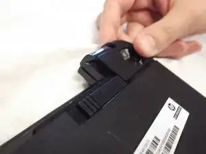 Затем сдвиньте другой ползунок в другой конец его направляющей — это вытолкнет батарею.