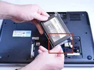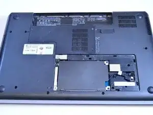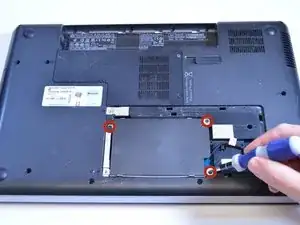 Найдите два винта с крестообразной головкой, которые крепят отсек жесткого диска.