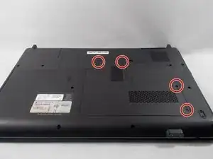 Перед продолжением полностью выключите ноутбук. Положите ноутбук так, чтобы была обращена к вам нижняя сторона.