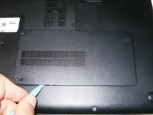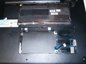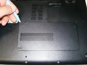 Для работы с этим ноутбуком или любым другим устройством важно выключить компьютер. Если вы не уверены, выключен ли компьютер или находится в режиме гибернации, включите его, а затем выключите через операционную систему. Отключите все внешние устройства, подключенные к компьютеру. Отключите питание от компьютера, сначала отсоединив шнур питания от сетевой розетки, а затем отключив адаптер питания от компьютера. Неисправный жесткий диск легко извлечь, и скрытых винтов или зажимов нет.