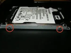 Снимите четыре винта с головкой Phillips M3.0×4.0 (два с каждой стороны), которые закрепляют монтажный кронштейн жесткого диска к жесткому диску.