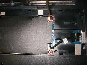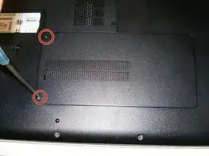 Ослабьте два винта с головкой Phillips 2.5×6.0, которые закрепляют крышку жесткого диска к компьютеру.