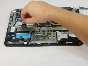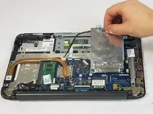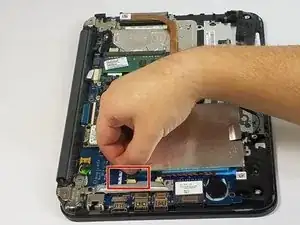 Отключите кабель аккумулятора от материнской платы, аккуратно потянув за черный провод у точки, ближайшей к белой защёлке.