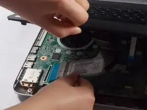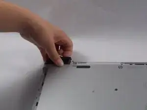 Поместите ноготь между внешней частью дисковода и нижней крышкой ноутбука.