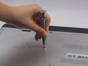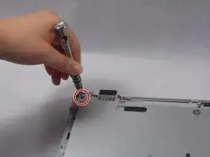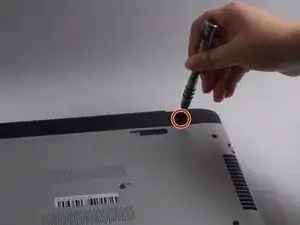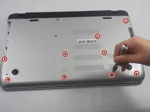 Используя магнитную отвертку с наконечником Phillips #0, открутите все видимые винты на нижней панели ноутбука. Длина этих винтов составляет около 7,5 мм.
