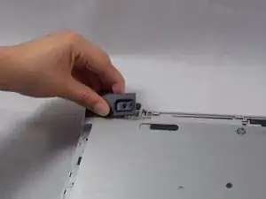 Разожмите фиксатор, удерживающий кабель кнопки питания.