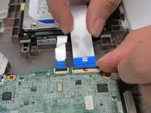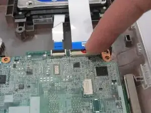 Отсоедините ленточный кабель, соединяющий тачпад с материнской платой.