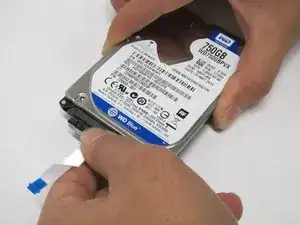 Поднимите черную фиксирующую планку, удерживающую два ленточных кабеля жесткого диска, чтобы освободить их.