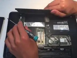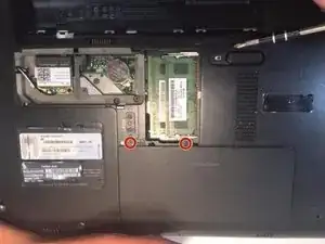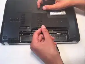 Отвинтите скрытые винты, чтобы снять крышку отсека жесткого диска.