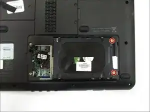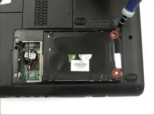 Найдите корпус жесткого диска в нижнем правом углу перевернутого компьютера.