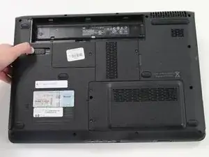 Чтобы извлечь батарею, потяните за язычок влево и поднимите батарею из компьютера.