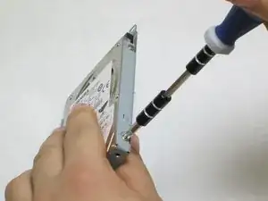 Удалите 4 винта с крестообразной головкой, расположенные по бокам жесткого диска (по два с каждой стороны).
