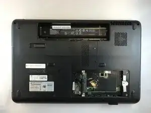 Переверните ноутбук так, чтобы нижняя часть была направлена вверх.