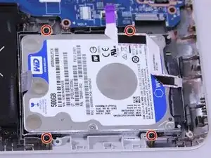 С помощью отвертки Phillips 00 удалите 4 винта Phillips 2.0 x 4.6 мм вокруг периметра жесткого диска.
