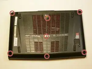 Отвинтите семь винтов Phillips №0 длиной 6 мм на нижней панели устройства.