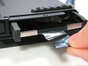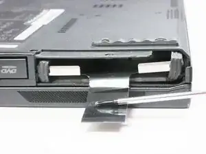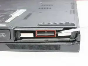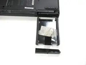 Аккуратно снимите пластиковую деталь, закрывающую порт жесткого диска, потянув перпендикулярно к стороне ноутбука.