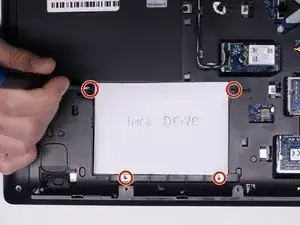 Используйте отвертку Phillips #00, чтобы вывернуть четыре винта длиной 5.5 мм вокруг жесткого диска.