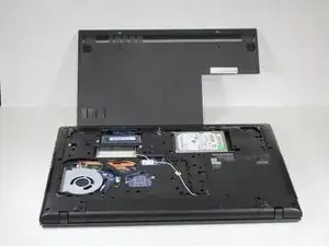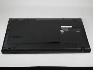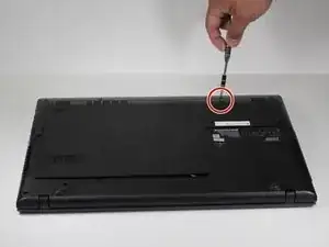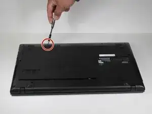 Удалите два заглушечных винта, а затем снимите заднюю часть ноутбука.