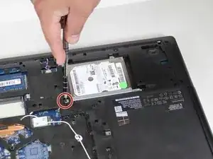 С помощью крестовой отвертки удалите четыре винта вокруг жесткого диска.
