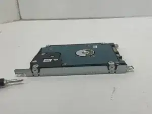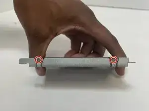 Используйте отвертку Phillips #1, чтобы снять 2 винта с обеих сторон жесткого диска (всего 4 винта).