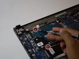 Удалите два винта Phillips #0 длиной 3 мм, которые удерживают жесткий диск в корпусе.