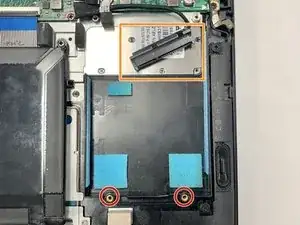 Удалите два винта длиной 3 мм, соединяющие жесткий диск с основанием компьютера, используя биту JIS #1.