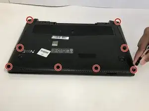 Используя отвертку Phillips #0, удалите восемь винтов диаметром 8 мм, которые закрепляют нижнюю крышку.