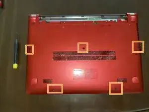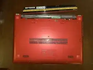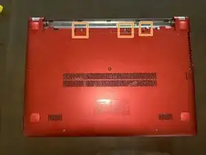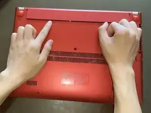 Переверните ноутбук так, чтобы задняя сторона была обращена вверх.