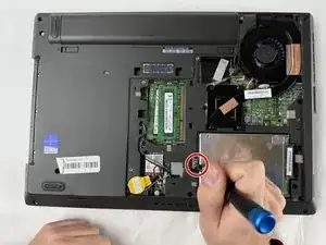 Открутите один винт длиной 3,5 мм рядом с жестким диском с помощью отвёртки Phillips #00.