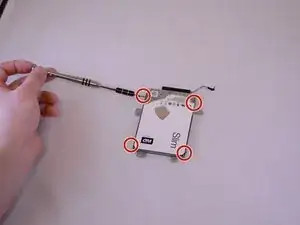 Используйте отвертку Phillips #0, чтобы отвинтить четыре винта по бокам рамки жесткого диска.