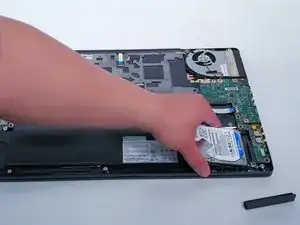 Затем потяните жесткий диск с конца батареи и продолжите снимать жесткий диск