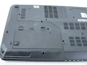 Удалите все двенадцать винтов Phillips #0 длиной 4 мм с задней панели ноутбука.