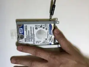 Удалите четыре винта длиной 5,3 мм, которые крепят жесткий диск в раме.