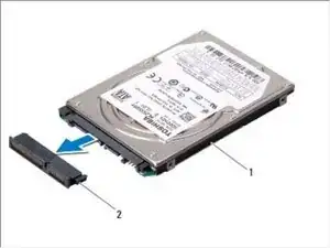 Используя язычок, сдвиньте жесткий диск влево, чтобы отсоединить модуль жесткого диска от разъема на системной плате.