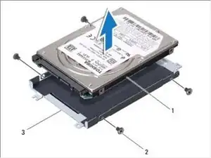 Удалите четыре винта, крепящих модуль жесткого диска к корпусу компьютера.