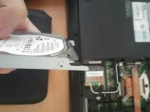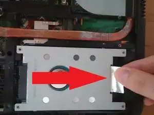 После снятия винтов, сдвиньте жесткий диск вправо, используя вкладку.