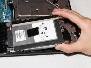 Поднимите крепление с жёсткого диска.