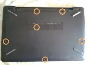 Переверните ноутбук и снимите нижнюю крышку корпуса