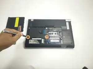 Найдите винты, фиксирующие жесткий диск, и удалите их.
