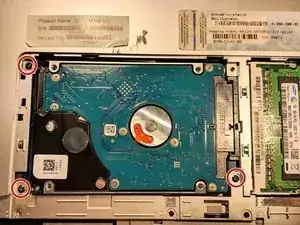 Открутите два оставшихся винта с крестовой головкой длиной 5 мм по бокам крышки отсека жесткого диска.