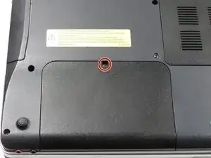 Удалите один винт Phillips #1 длиной 7.7 мм, крепящий панель к ноутбуку.