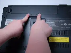 Сдвиньте два защелки к центру аккумулятора, чтобы освободить его.