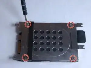 Снимите четыре винта (длина: 7.7 мм) с помощью отвертки Philips #00, которые крепят жесткий диск.