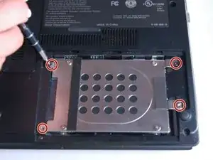 Для безопасного удаления жесткого диска сначала выньте аккумулятор. Жесткий диск находится под панелью на ноутбуке и может быть извлечен путем снятия винтов.